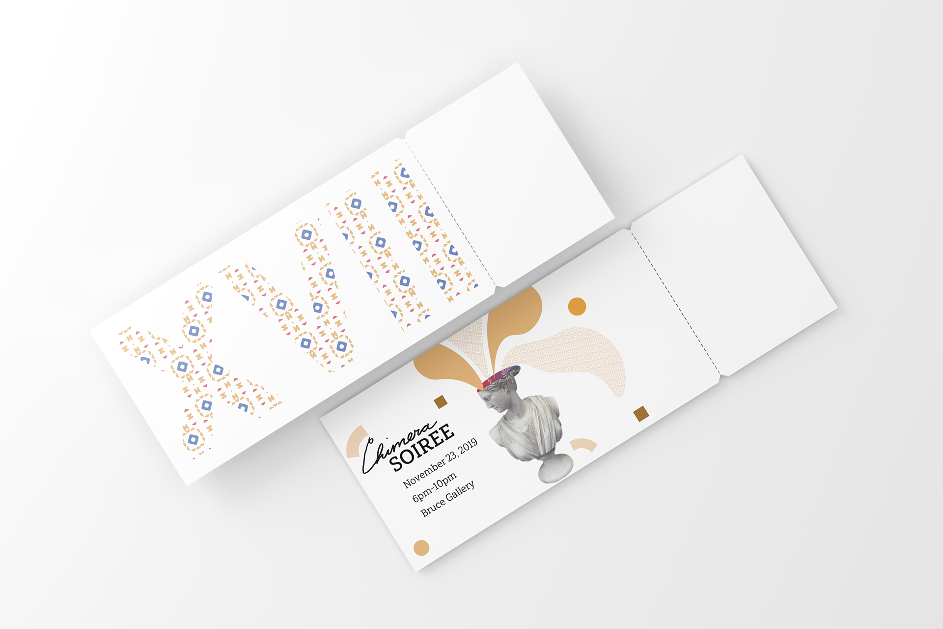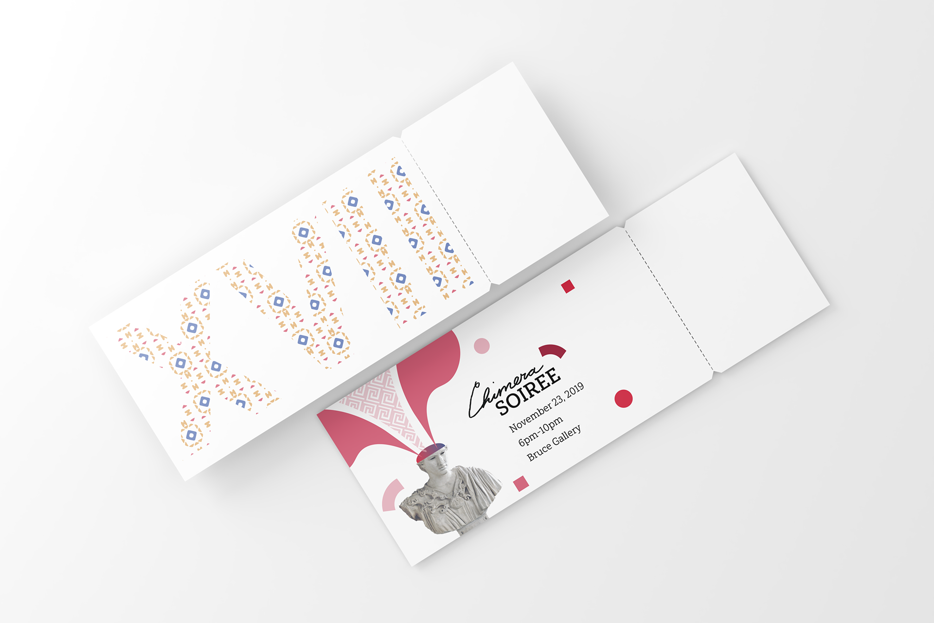 I was on the Promotion Team for Chimera at Edinboro University my Junior Year and contributed by making tickets and mini posters for the event.